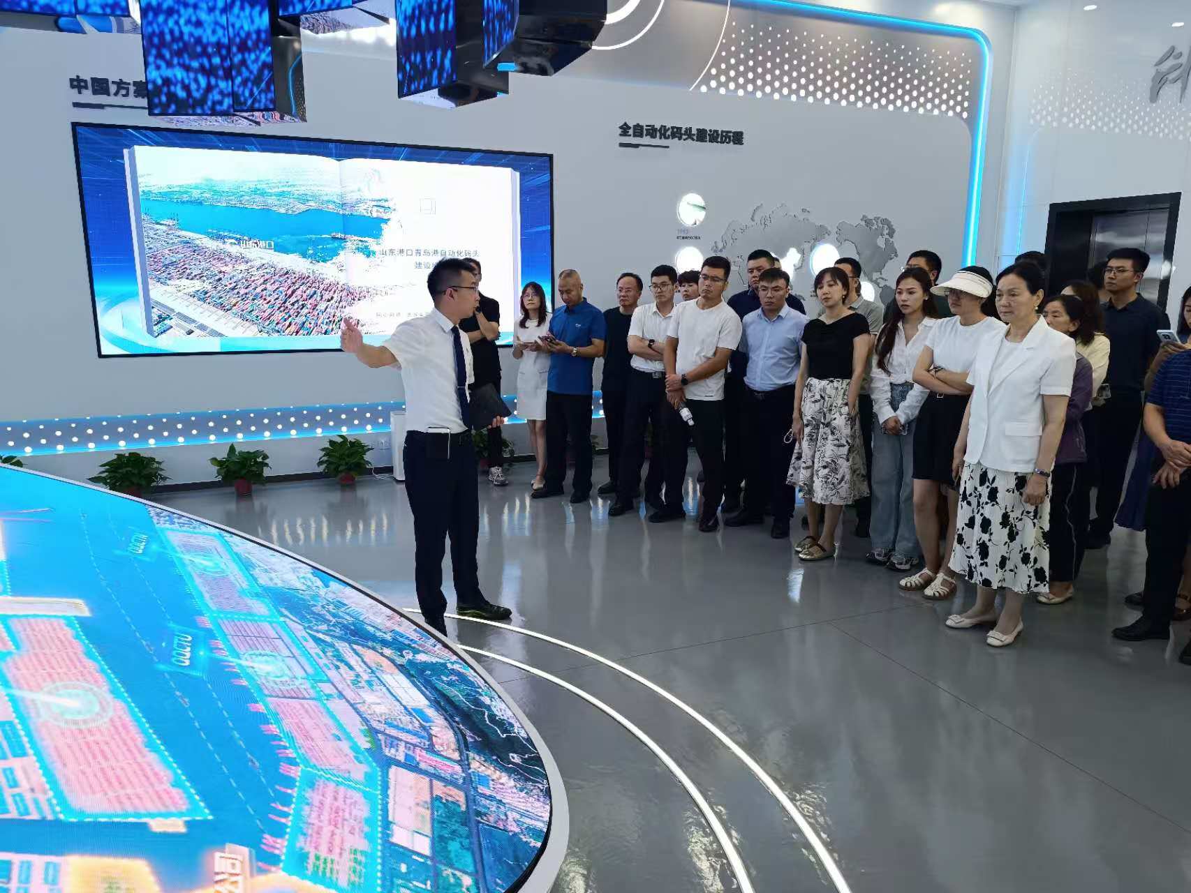 “發(fā)展新質(zhì)生產(chǎn)力,建設(shè)世界一流海洋港口”。第四站,聯(lián)絡(luò)員一行來到全球領(lǐng)先、亞洲首個(gè)全自動(dòng)化集裝箱碼頭和首個(gè)“氫+5G”智慧綠色碼頭-山東省港口集團(tuán)青島港全自動(dòng)化集裝箱碼頭,這也是全國(guó)首個(gè)全國(guó)產(chǎn)全自主自動(dòng)化碼頭。該碼頭實(shí)現(xiàn)了當(dāng)年投產(chǎn),當(dāng)年盈利,作業(yè)效率較傳統(tǒng)碼頭提升30%,節(jié)省人力80%,10次打破自己保持的自動(dòng)化碼頭裝卸效率世界紀(jì)錄。聯(lián)絡(luò)員們了解了青島新前灣集裝箱碼頭有限責(zé)任公司關(guān)于智慧港口建設(shè)實(shí)踐和綠色港口建設(shè)情況。山東省港口以科技創(chuàng)新賦能產(chǎn)業(yè)創(chuàng)新、以改革探尋轉(zhuǎn)型發(fā)展最優(yōu)解的高質(zhì)量發(fā)展新路徑給聯(lián)絡(luò)員們帶來深刻啟示。